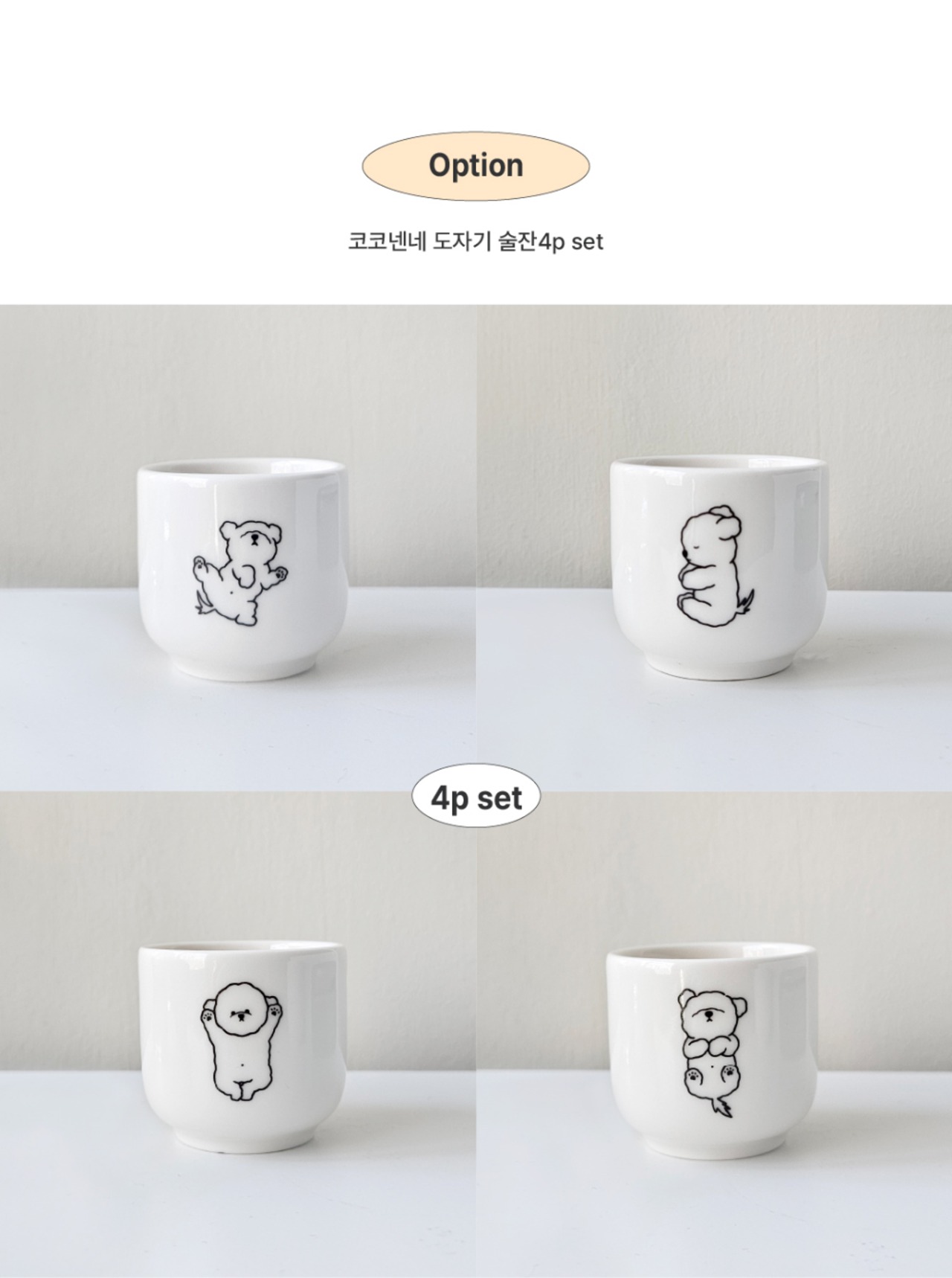 [予約販売] [tteokguk_nuna] Kokonenne 4-piece set of sake glasses (おちょこ 4-pieceセット)