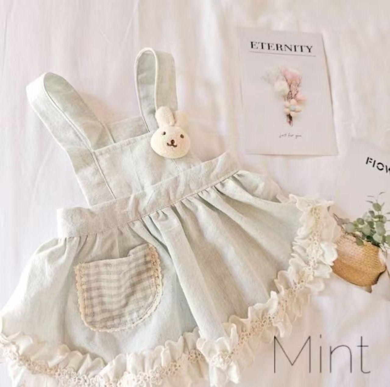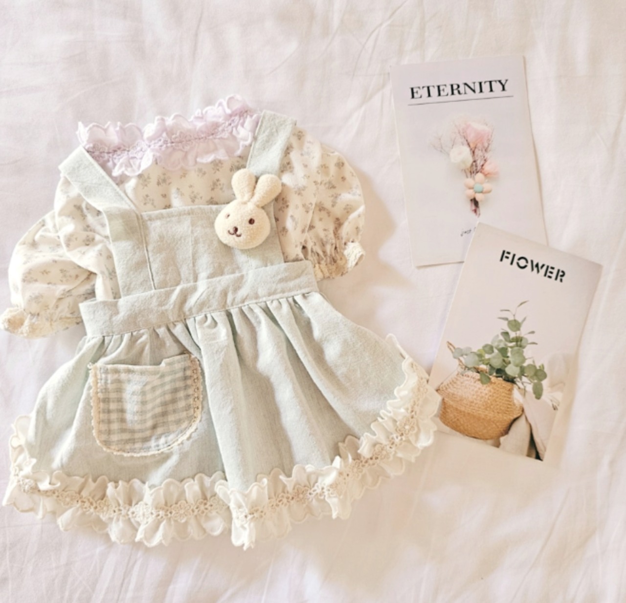 [予約販売] [Soso Boutique] Little bunny Opsは、愛らしいウサギモチーフが特徴のキュートなオペラドレスです!柔らかな素材を使用しており、着心地が良く、愛犬がリラックスして過ごせるデザイン。特別なお出かけや日常使いにもぴったりで、どんなシーンでも愛犬の魅力を引き立てます。可愛らしい印象を与え、周囲の視線を惹きつけること間違いなしのアイテムです!