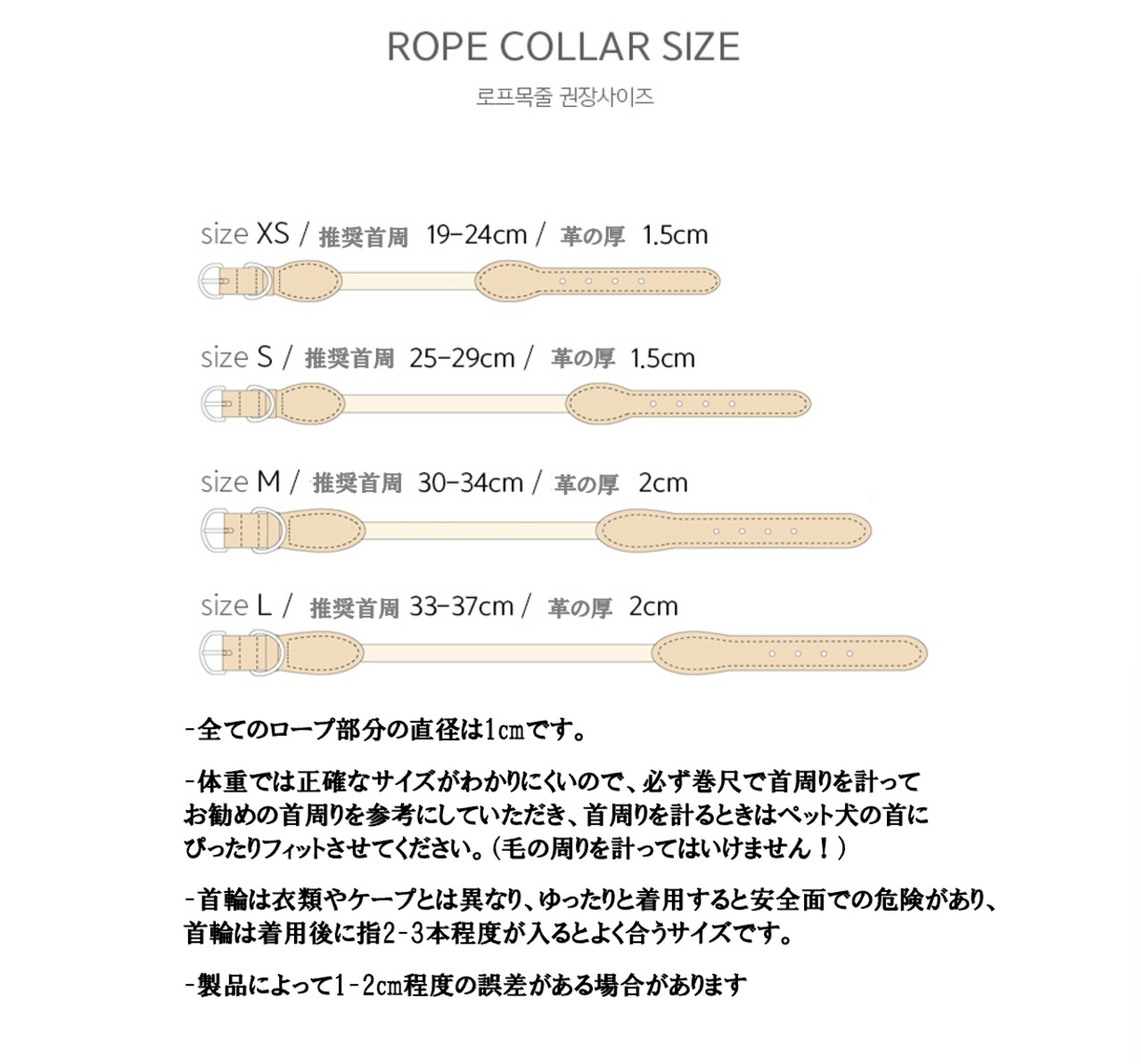 -首輪は衣類やケープとは異なり、ゆったりと着用すると安全面での危険があり、首輪は着用後に指2-3本程度が入るとよく合うサイズです。