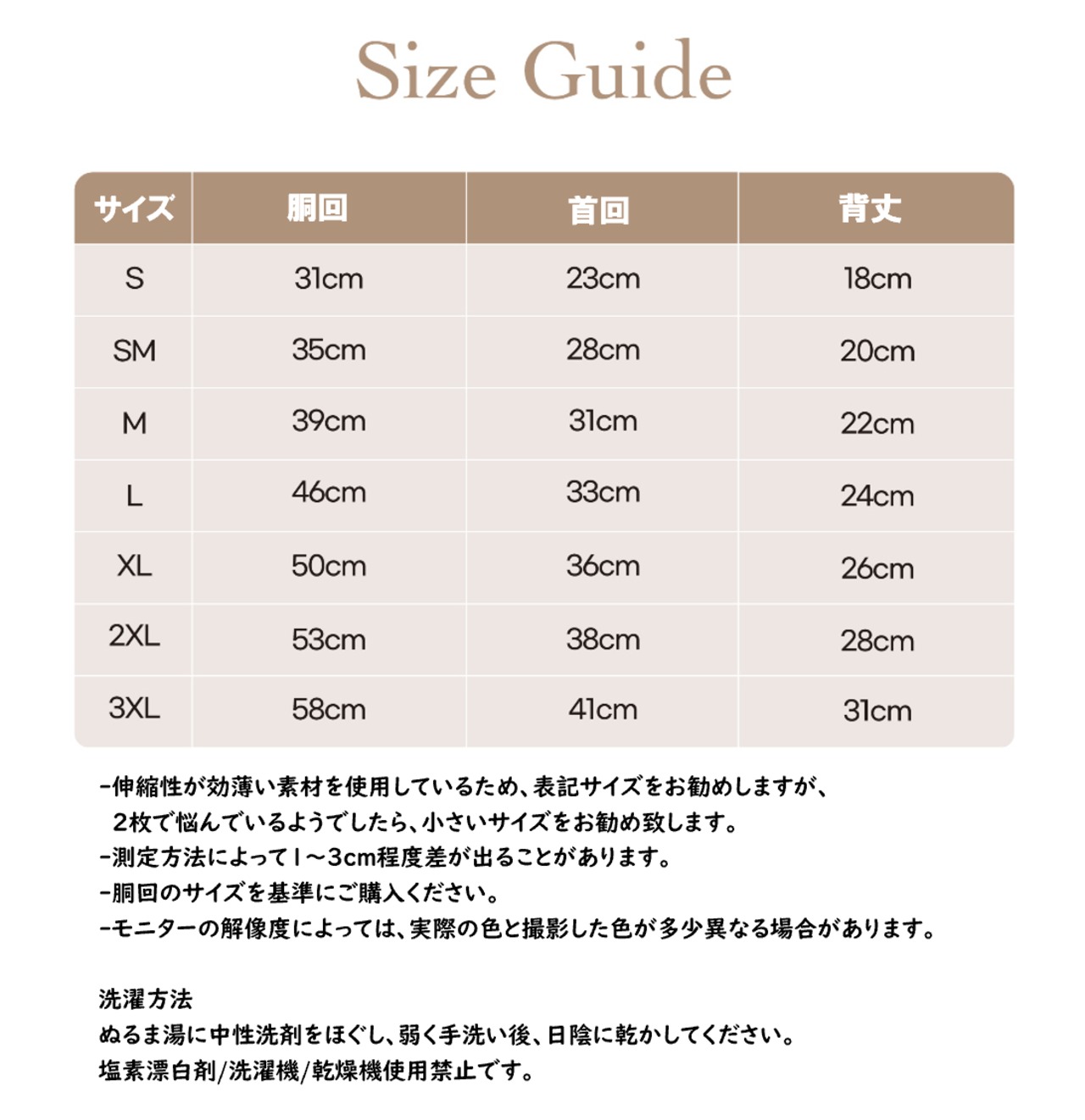 -伸縮性が効薄い素材を使用しているため、表記サイズをお勧めしますが、 2枚で悩んでいるようでしたら、小さいサイズをお勧め致します。