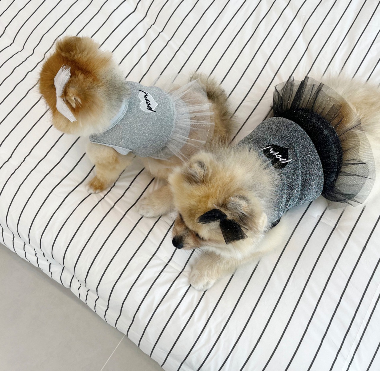 [予約販売] 【pompompom】Twinkle One Piece は、特別な日にも普段使いにもぴったりなファッショナブルなワンピースです!キラキラと輝くデザインが、愛犬を華やかに演出します。柔らかくて肌に優しい素材を使用しており、快適さと動きやすさを兼ね備えた一着です。特別な思い出を残すために、ぜひお試しください!