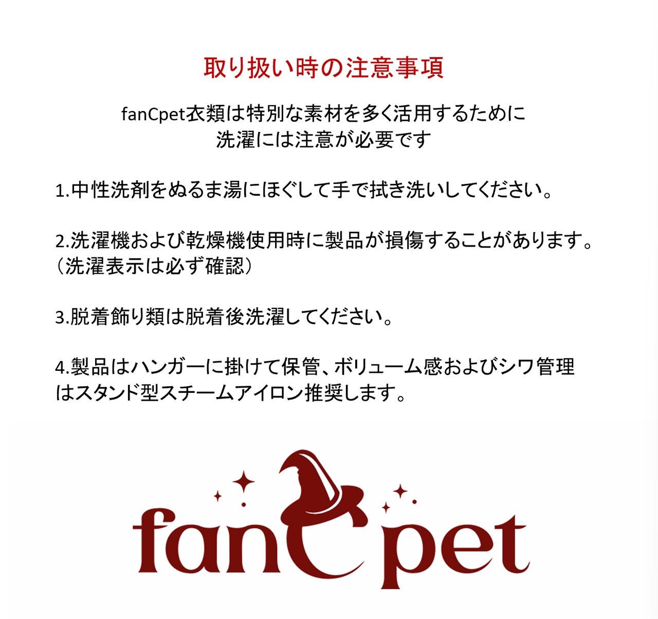 fanCpet衣類は特別な素材を多く活用するために洗濯には注意が必要です。