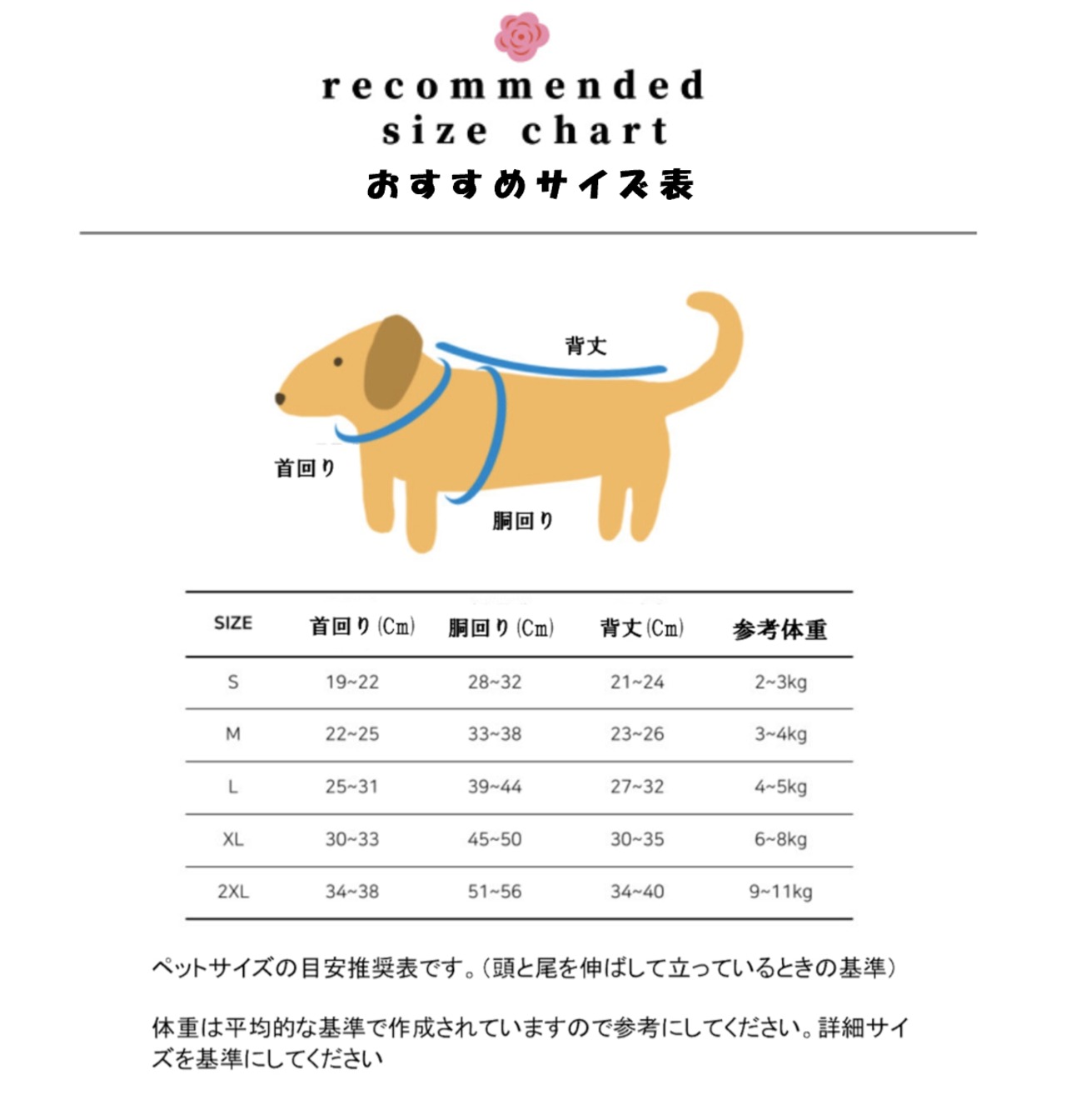 ※体型や犬種によって胸囲等も異なりますので、必ずサイズ測定の上ご購入下さい。